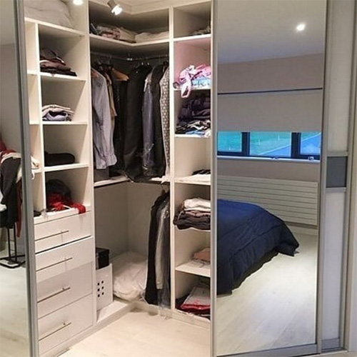 – Угловые шкафы-купе на заказ хорошо подходит для комнат со сложными очертаниями, планировкой, когда требуется скорректировать форму комнаты.